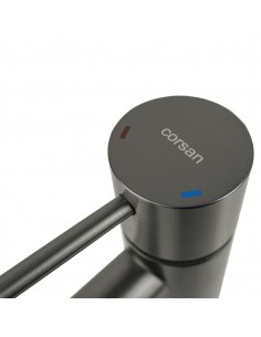 Bateria umywalkowa podtynkowa Lugo marki Corsan w kolorze gun metal. Smukłe i nowoczesne wzornictwo świetnie wpisze się w wystrój niemal każdej łazienki. Bateria dedykowana jest do montażu podtynkowego w ścianie. Dzięki takiemu montażowi możesz dosunąć umywalkę do samej ściany i zaoszczędzić miejsce na blacie. Ta gustowna bateria podtynkowa wykonana została w całości z mosiądzu i stali oraz w wykończeniu szczotkowanym w kolorze gun metal. Dzięki technologii Anti Wipe jest łatwa do utrzymania w czystości i nie wymaga szorowania. Zastosowana ceramiczna głowica mieszaczowa zapewnia bezproblemowe użytkowanie przez lata i płynną regulację temperatury wody. W zestawie znajdziesz niezbędne elementy montażowe w tym box ułatwiający umieszczenie baterii w ścianie. Posiada perlator napowietrzający strumień wody, który znacznie zmniejszy zużycie wody. Podłączenie standardowe na 1/2 cala.