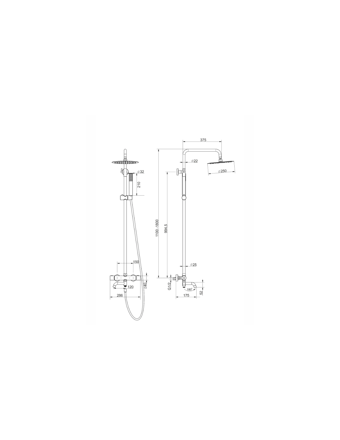 Kolumna pryszniowa LUGO CMN01TBSLW Deszczownica 25cm Termostat Wylewka obrotowa Stal szczotkowana