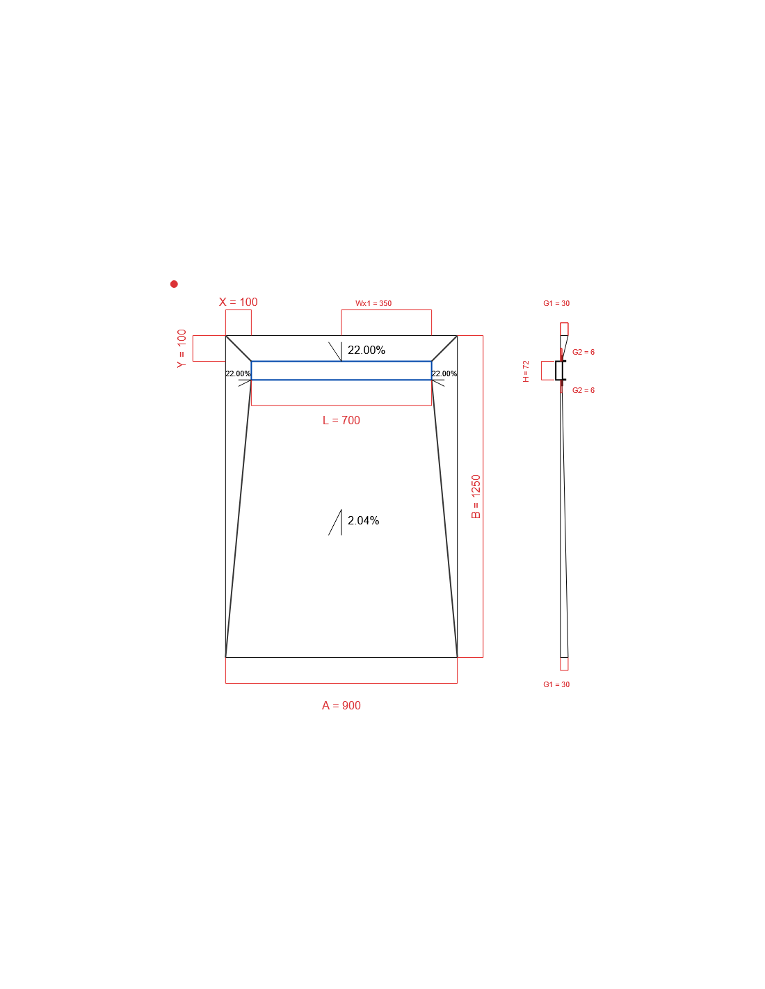Laybase Wiper 4 way 900 x 1250 mm Liniowy Elite Pure 700 mm Matt Black, Grubość: 30 do 6 mm Syfon: 350 mm, Syfon: H+M Drop 35/50