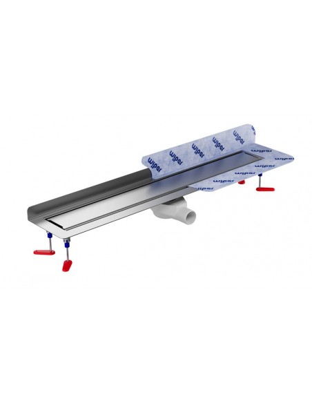 Odpływ liniowy przyścienny niewidoczny Wiper Invisible ZK. Kupując odpływ liniowy Wiper Invisible ZK 1200 mm, otrzymujesz kompletny zestaw: wysokoprzepływowy syfon, regulowane nóżki montażowe oraz mankiet uszczelniający.