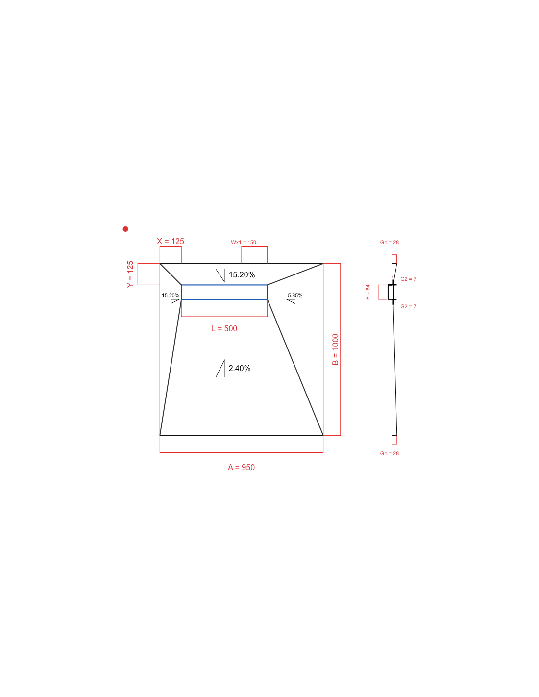 Showerbase Wiper 4 way 950 x 1000 mm Liniowy Premium Pure 500 mm Brushed, Grubość: 28 do 7 mm Syfon: 350 mm, Syfon: H+M Drop 35/50