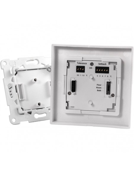 Urządzenie oferuje tryb obniżenia temperatury (setback), funkcję antyzamarzaniową oraz możliwość ustawienia tolerancji temperatury, co zwiększa komfort użytkowania i ogranicza zużycie energii.