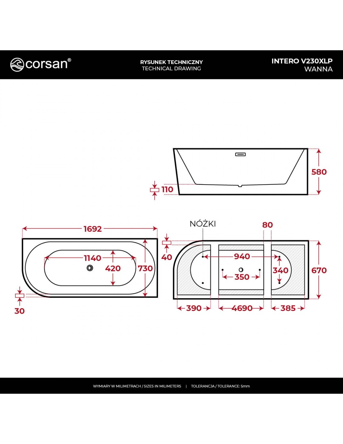 Specyfikacje techniczneWanna INTERO - komfort kąpieli z precyzją formy