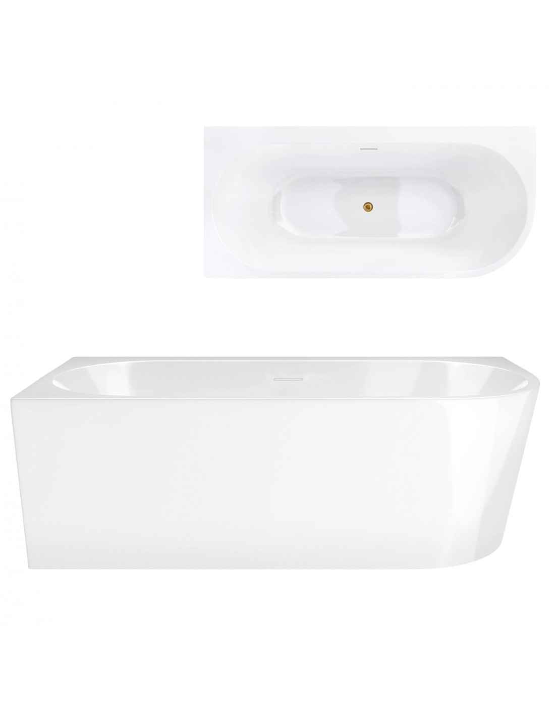 Wanna narożna INTERO V240LLBGL 160 cm Montaż lewostronny Przelew szczelinowy Korek klik klak Złoty szczotkowany