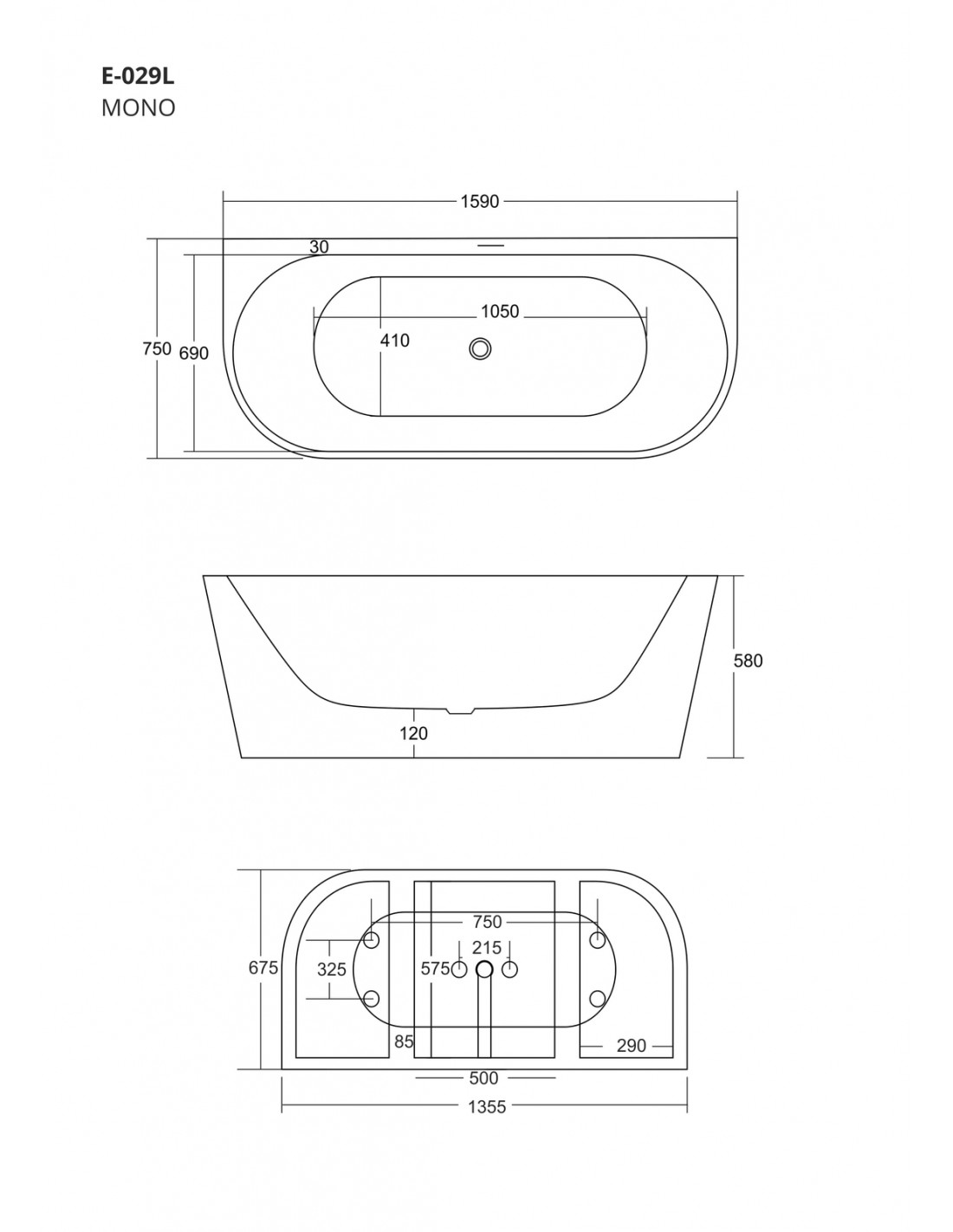 Wanna przyścienna wolnostojąca Corsan MONO 160 x 75 cm Korek klik-klak Czarny