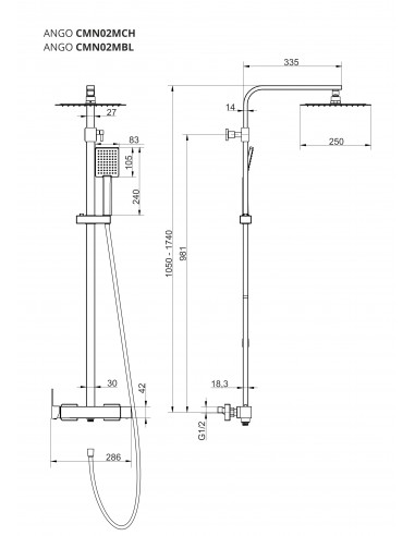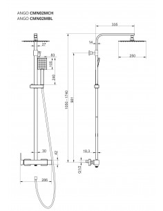 Zarówno w deszczownicy, jak i w słuchawce zastosowano silikonowe dysze w technologii Anti Calc znacznie utrudniające osadzanie się kamienia wapiennego z wody, który mógłby blokować przepływ. Maksymalna wysokość kolumny to 174 cm, a minimalna 105 cm. Deszczownica w rozmiarze 25 cm i odsadzeniem ramienia na 33 cm. Podłączenie standardowe na 1/2 cala.