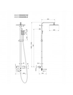 Zestaw natryskowy Kolumna prysznicowa Corsan ANGO Deszczownica 25cm Wylewka obrotowa GunMetal