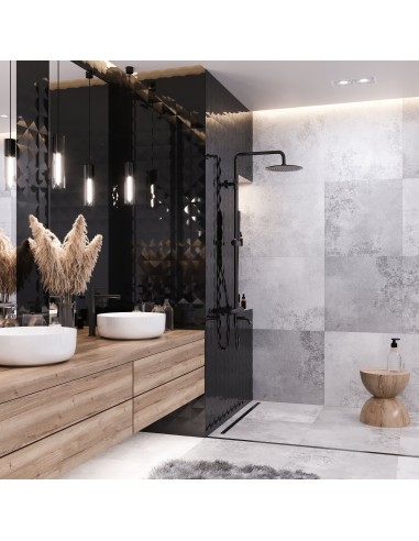 Dzięki technologii Anti Wipe powierzchnia kolumny jest łatwa do utrzymania w czystości i nie wymaga intensywnego szorowania. W zestawie znajduje się dwufunkcyjna bateria ścienna, drążek, słuchawka z wężem oraz okrągła deszczownica, co tworzy kompletny system prysznicowy.