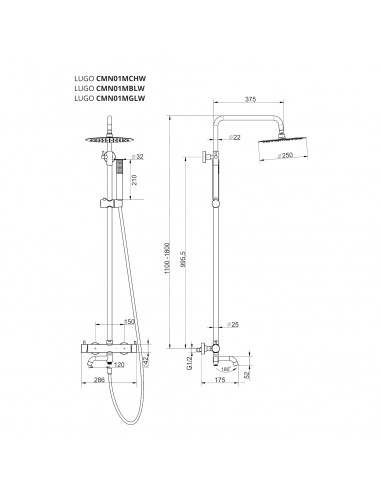 Specyfikacje techniczneKolumna prysznicowa ścienna Lugo marki Corsan – Wykończenie szczotkowany złoty
