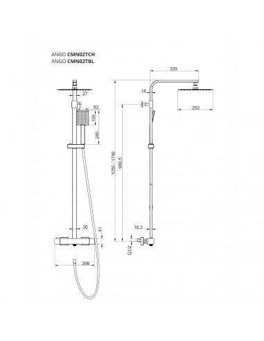 Zestaw natryskowy z termostatem Kolumna Corsan ANGO Deszczownica 25cm GunMetal