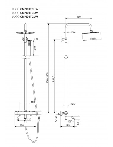 Specyfikacje techniczneKolumna prysznicowa ścienna Lugo marki Corsan – Wykończenie szczotkowany złoty